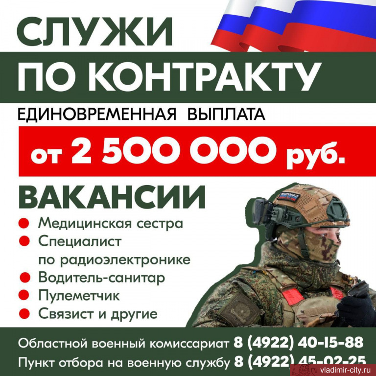 Как отметил министр труда и занятости населения Владимирской области Андрей Григорьев, в Год защитника Отечества одной из ключевых задач является помощь бойцам в возвращении к мирной жизни. Государство обеспечивает для этого целый комплекс мер поддержки: приоритетное трудоустройство, помощь в открытии собственного дела и бесплатное переобучение. Для получения подробной информации обращайтесь в филиалы Кадрового центра «Работа России» и военные комиссариаты по месту жительства. Подробнее о службе по контракту в Вооруженных Силах РФ https://clck.ru/3CDgJV.