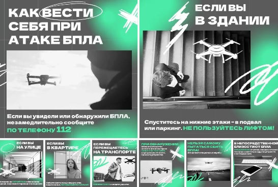 В случае визуального обнаружения в воздухе БПЛА, полёт которого может сопровождаться характерным звуком двигателя, необходимо: