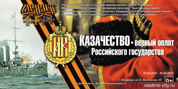 12 февраля 2015 года в 14.00 в Выставочном центре (Б.Московская, 59) состоится открытие выставки «Казачество — верный оплот Российского государства».