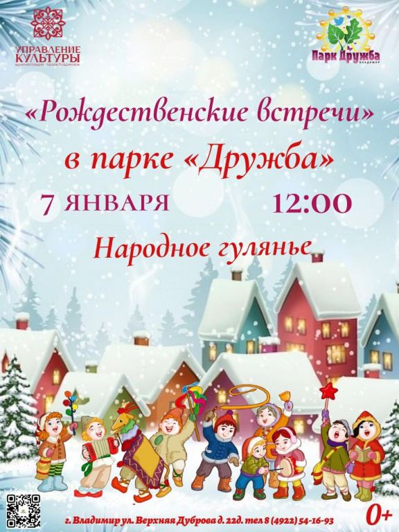 7 января в парке «Дружба» (ул. В. Дуброва, д. 22д) состоится народное гулянье «Рождественские встречи». Праздник начнётся в 12.00, когда на главной сцене парка развернётся настоящая рождественская...