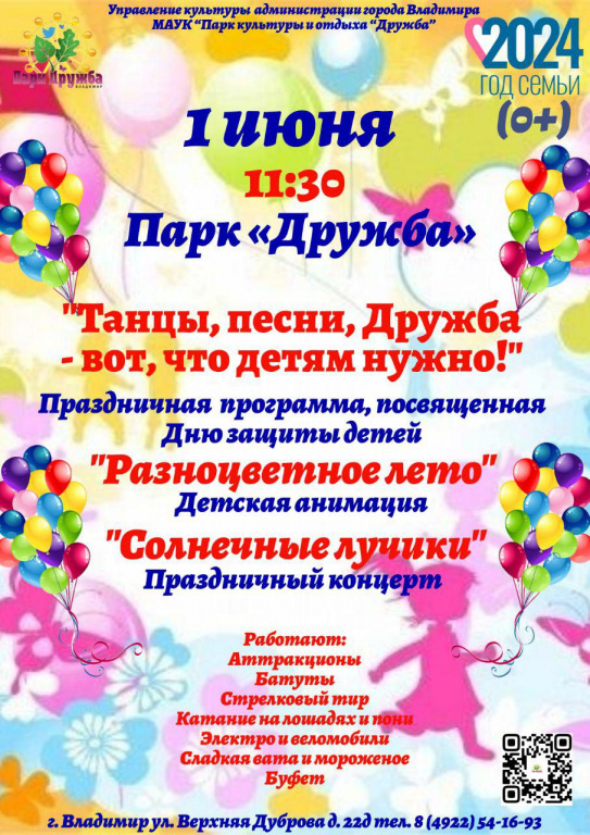 1 июня в Парке культуры и отдыха «Дружба» состоится праздничное мероприятие, посвященное Дню защиты детей.