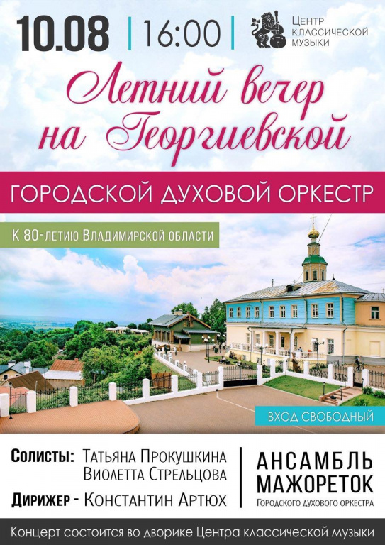 10 августа на смотровой площадке улицы Георгиевской сразу два муниципальных коллектива порадуют своим творчеством владимирцев гостей города.