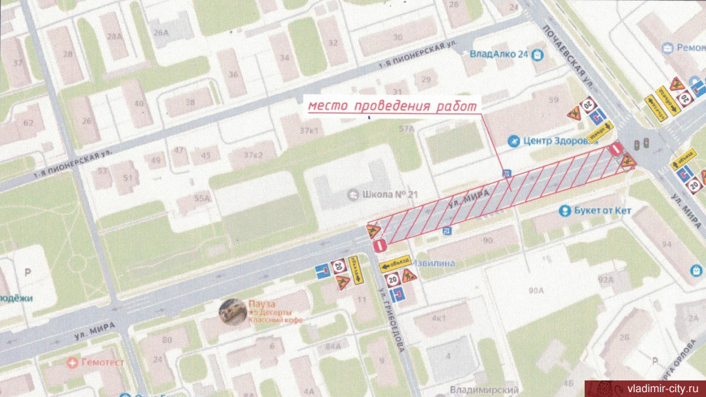 В связи с проведением работ ООО «СЗ «СТРОИТЕЛЬ ПРО» по устройству сети ливневой канализации К2 открытым способом к строящемуся жилому дому по адресу: г. Владимир, ул. Мира, д. 90-а, с 22.00 10.10.2025 до 06.00 11.10.2025 и с 22.00 11.10.25 до 06.00 12.10.25 будет ограничено движение всех видов автотранспорта на участке проезжей части дороги от пересечения ул. Мира и Грибоедова до д. 92 по ул. Мира.
