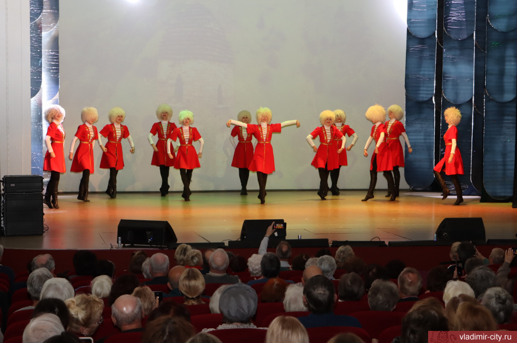 Продолжилось мероприятие концертом представителей народных коллективов, проживающих в областной столице. Номера «Ой, ты Россия», «Сказ о граде Владимире», «Ойся ты ойся, ты меня не бойся» исполнили музыкальный театр «Разгуляй», фольклорный ансамбль «Муравушка», муниципальный ансамбль «Вишенка». Башкирский, татарский, кавказский, азербайджанский танцы представил камерный балет «Гестус». Также выступил ансамбль национального армянского танца «Арарат» и ученики школы барабанов «Арцах». Завершилась программа песней «Катюша» на разных языках, исполнили которую народный коллектив «Хор ветеранов Войны, Труда и Вооруженных сил им. Погосова», театр песни «Амега» и представители национальных общественных организаций города Владимира.