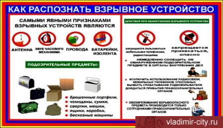 Управление гражданской защиты города Владимира напоминает жителям как вести себя при обнаружении подозрительного предмета и какие действия предпринимать.