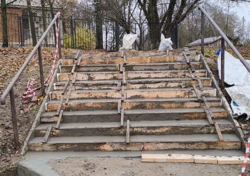 Накануне специалисты муниципального «Центра управления городскими дорогами» провели заливку бетона для формирования новых ступеней городской лестнице на ул. Завадского. Ранее лестница была разруше...