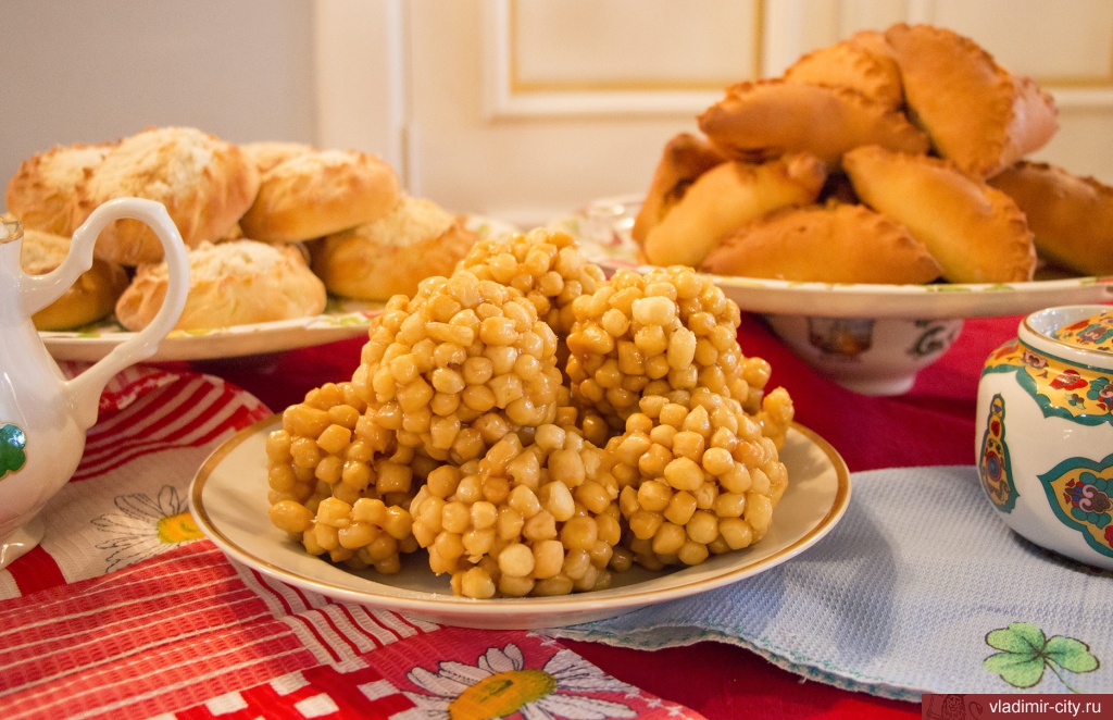 А в фойе ДК Молодежи развернулась яркая выставка. Гости праздника знакомились с историей татарского национального костюма, технологией пошива изделий с использованием кожаной мозаики, вышивки серебряными нитями и уникального казанского шва. Работы были представлены студентами кафедры дизайна национальных искусств Казанского университета. Все желающие могли попробовать традиционные блюда татарской кухни - чак-чак, эчпочмак, губадью и ароматный татарский чай.
