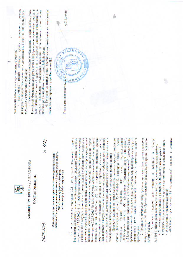 1. Организатор аукциона: управление земельными ресурсами администрации города Владимира.